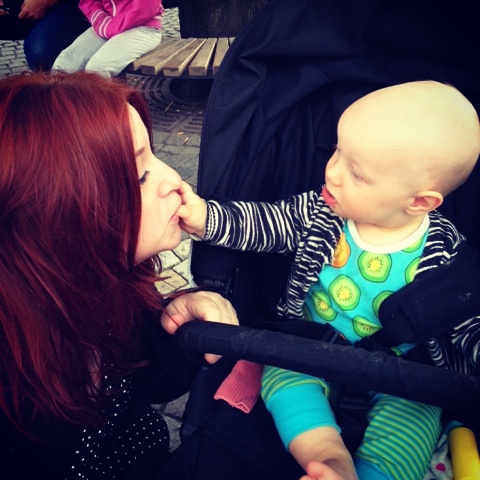 IMG_20150811_214853 Next Published 2015-08-11 at 480 × 480 in My day in Stockholm in pictures I ran into my sister in law and my sweet little niece, what an amazing surprise! She’s always exploring my face and she’s totally fascinated by my red hair.
