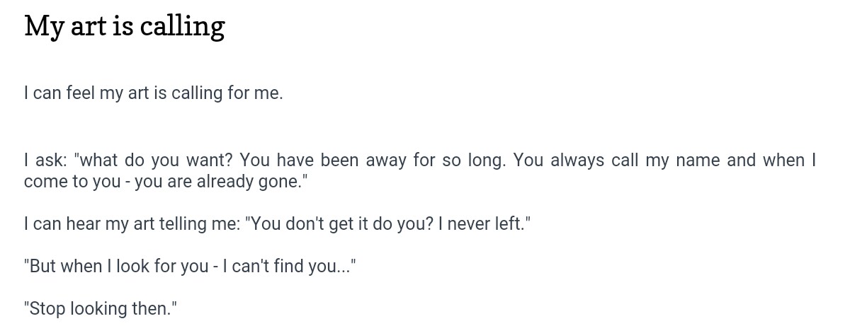yes you should write a book you have a rare and special gift for words and art in equal measure sometimes people have one or the other but you have both i look at your art and i feel your emotions i read your words and i see your thoughts but put them together and i see you…………. i really like stillness or sleep it reminds me of when i was younger i used to hold my hand up to the sun and look at the light as it silhouetted my fingers and i thought the dark parts in the middle of my fingers was my soul Stevie
