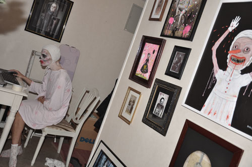 DSC_0448 Previous Next Published 2015-12-15 at 500 × 332 in Moments of my life My muse Domenique dressed up like one of my demons, among my demons on the wall.