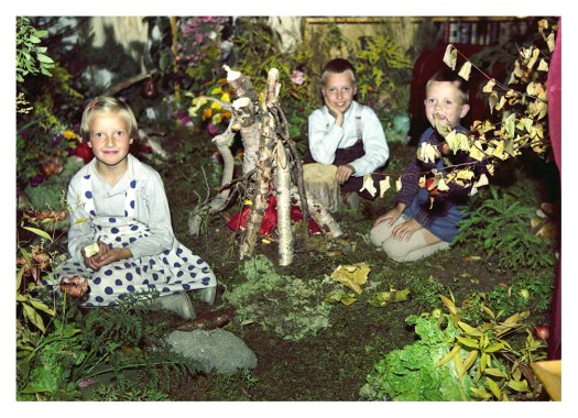 I’ve inherited my artistic talents from my Finnish grandmother – who was very creative. At one point she turned her living room into a forest, with real moss on the floor, trees, branches, leaves, bushes, roots and all the different elements that you can find in nature. Here is a photo of my dad and his siblings, and one of my grandparents in this little enchanted forest.
