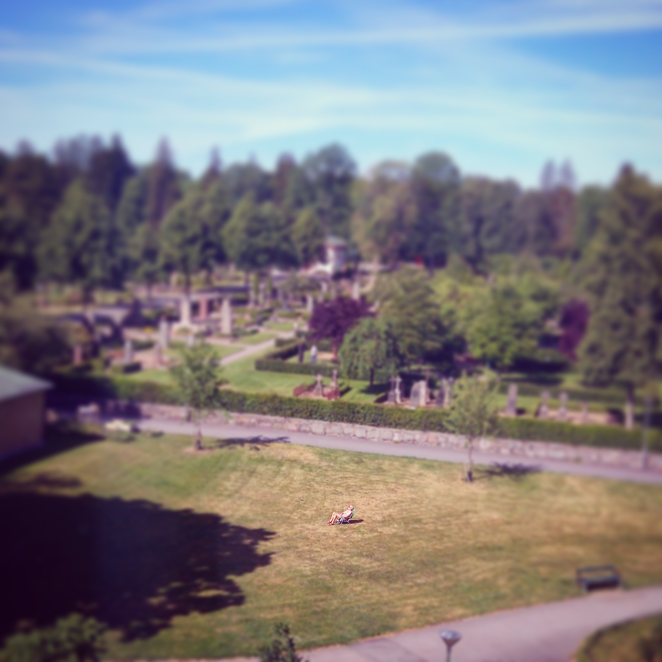 Right now in the real world 2016-06-222017-03-14 The view from my window right now: a real Swede knows how to enjoy life properly – sunbathing alone outside the cemetery. Dela det här: Click to share on X (Opens in new window) X Click to share on Facebook (Opens in new window) Facebook Like Loading...