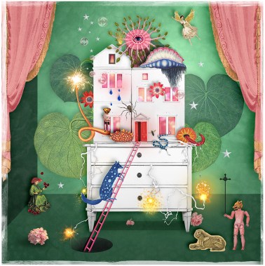 Published 2022-02-21 at 1200 × 1205 “The House of Dreams and Nightmares”, by Mia Makila, digital collage, 2022. Available.