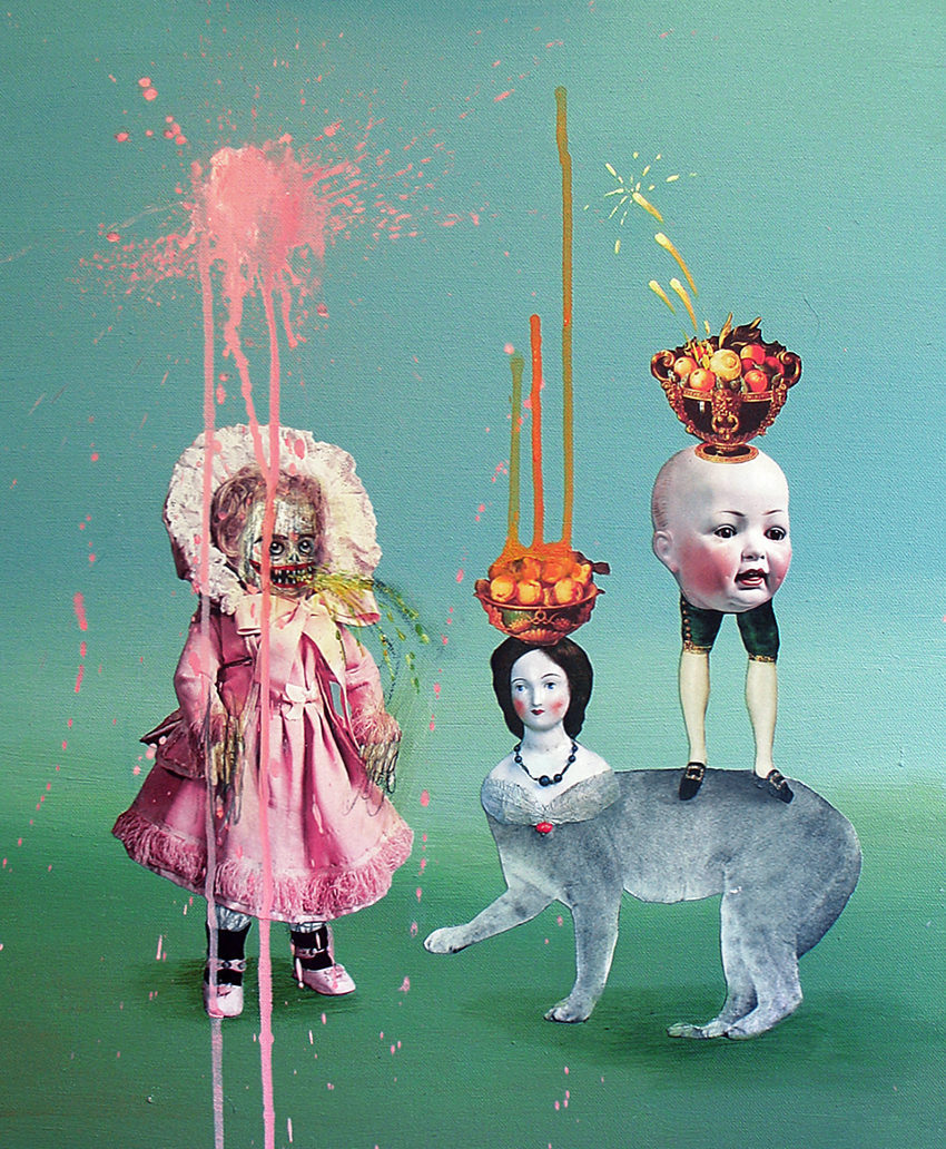 Previous Next Published 2020-08-26 at 850 × 1032 in DIGITAL COLLAGES BY MIA MAKILA “Dollyland” (2007) acrylic, paper cut-outs and charcoal on canvas. Unavailable.