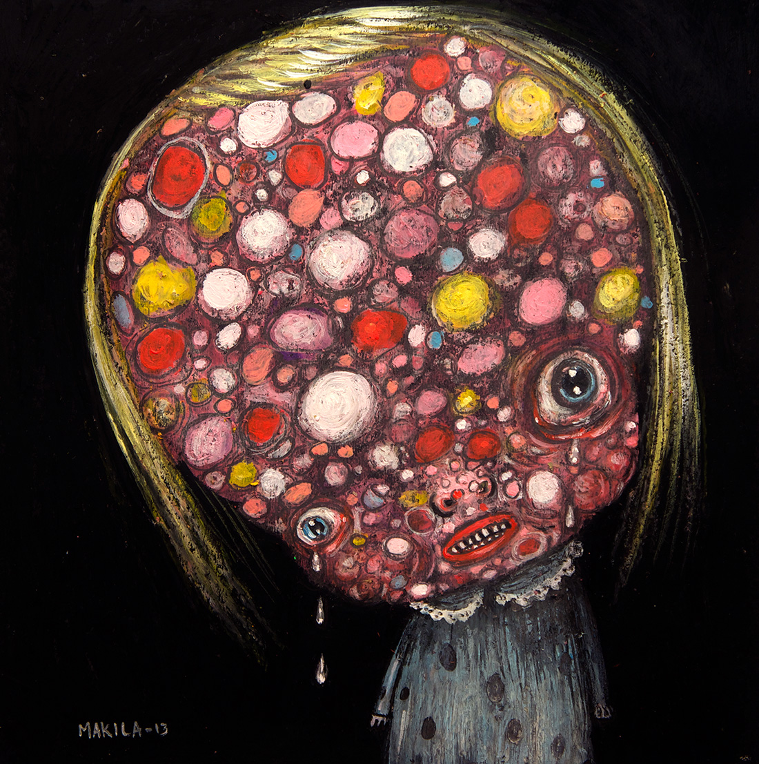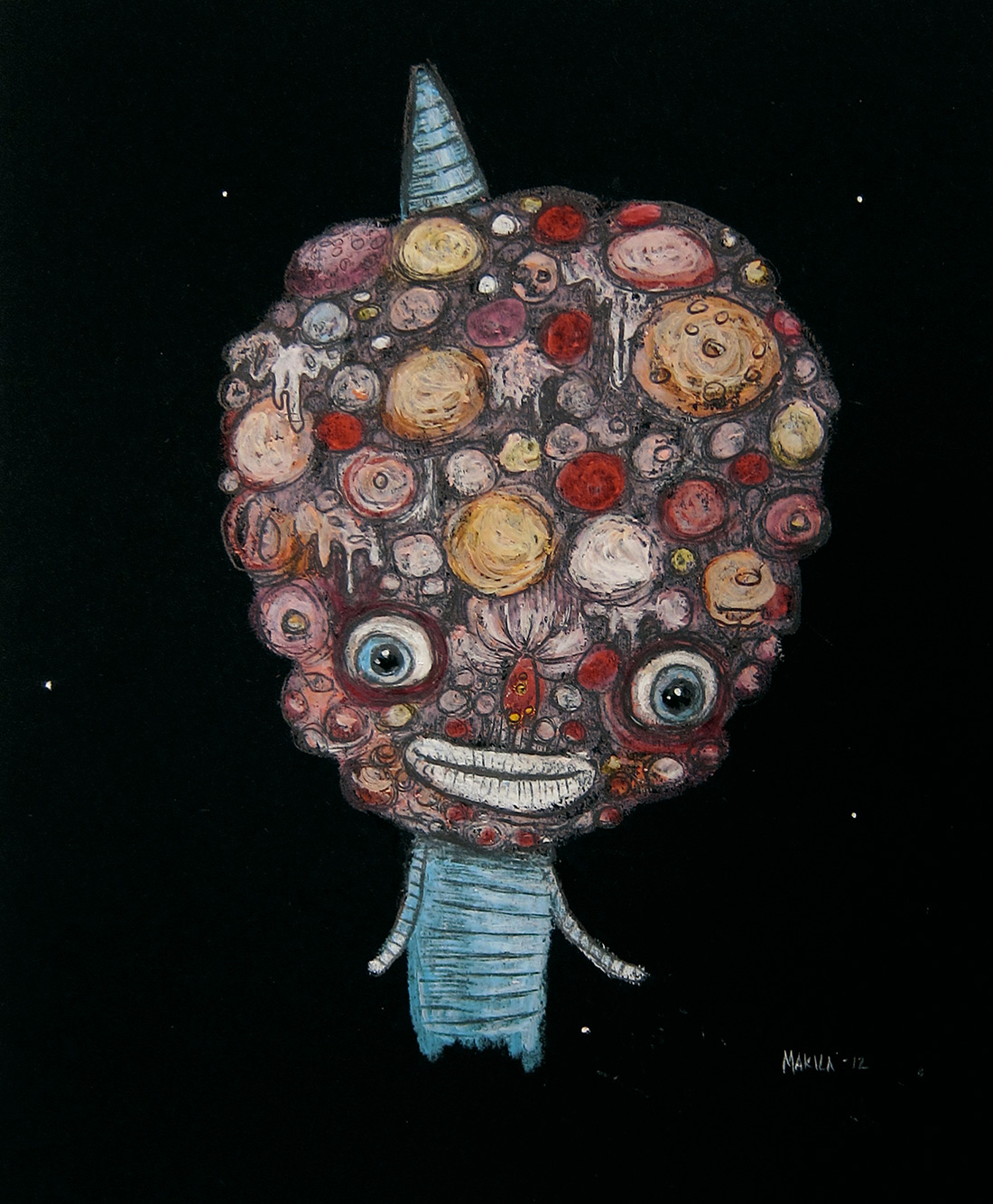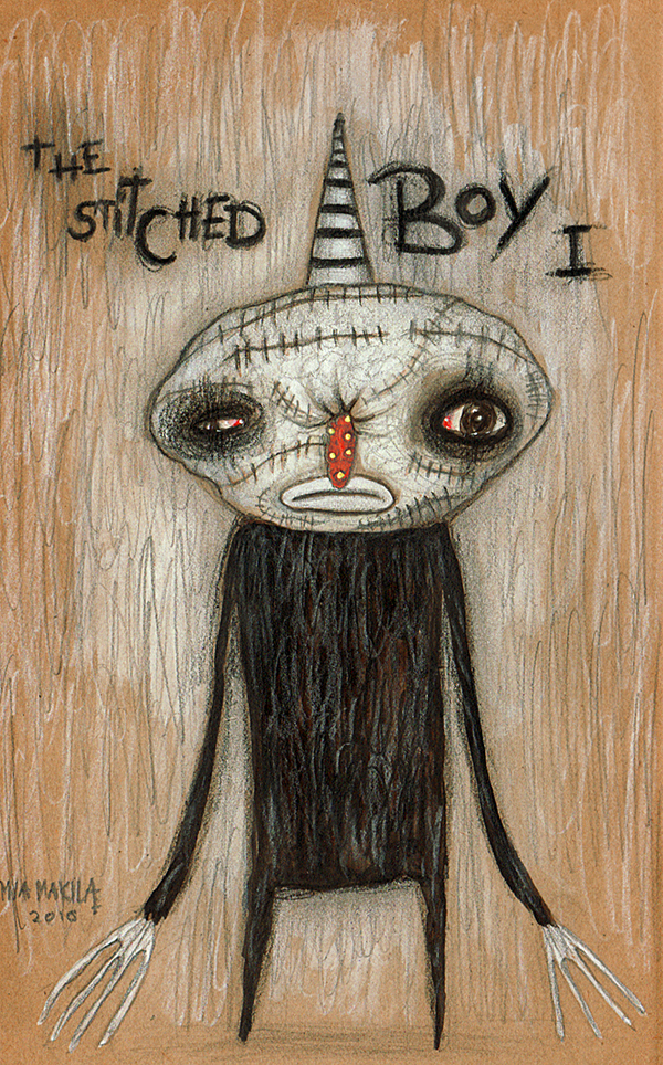 - “The Stitched Boy” (2011), acrylic and color pencils on paper.