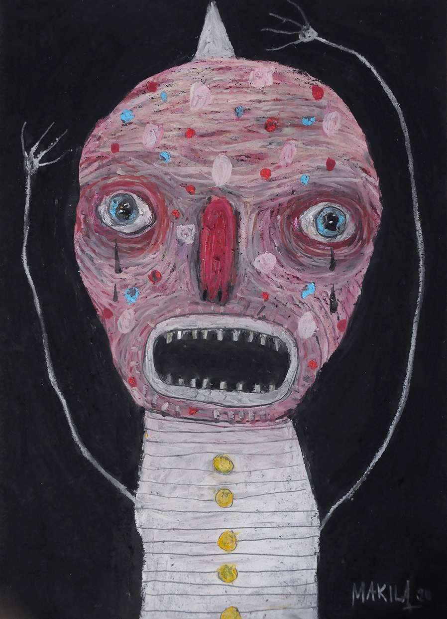 Previous Next Published 2020-04-15 at 898 × 1242 in DRAWINGS BY MIA MAKILA “The Self-Isolater”, oil pastel on black paper