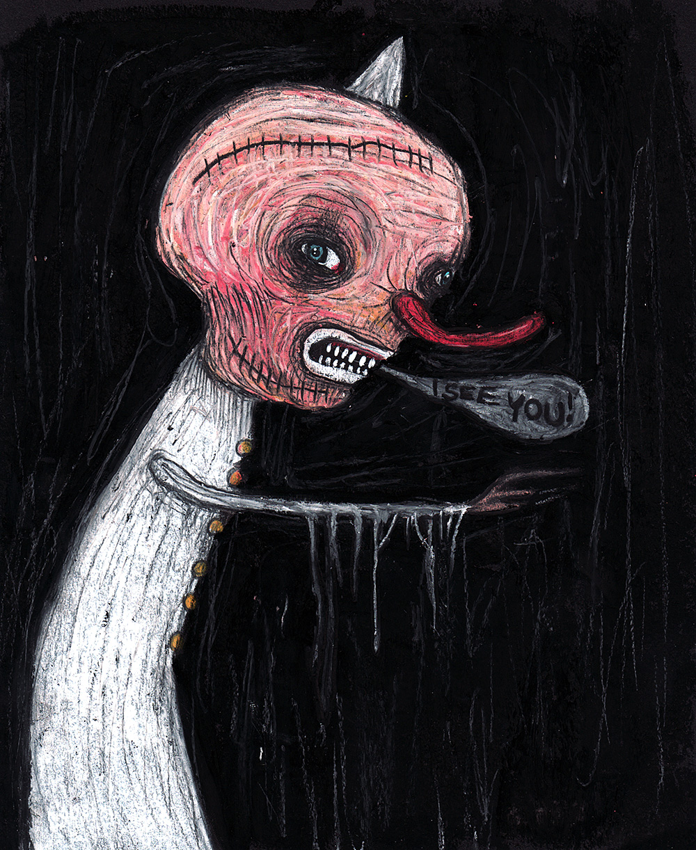 “The Observer” by Mia Makila, 2010. Oil pastels on black paper.