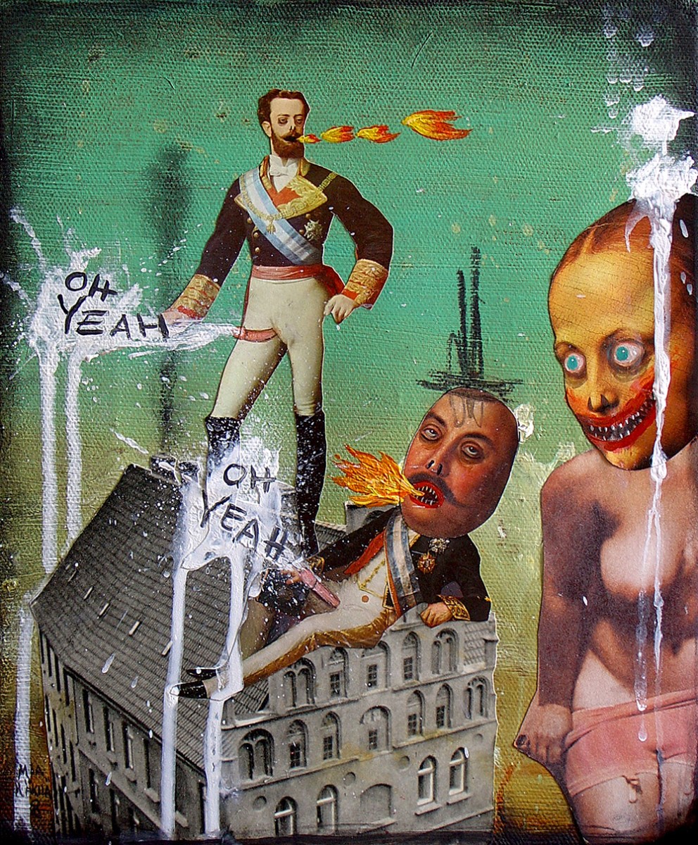 Published 2019-05-05 at 1000 × 1210 “The Game” (2008) acrylic, paper cut-outs and charcoal on canvas. Unavailable.