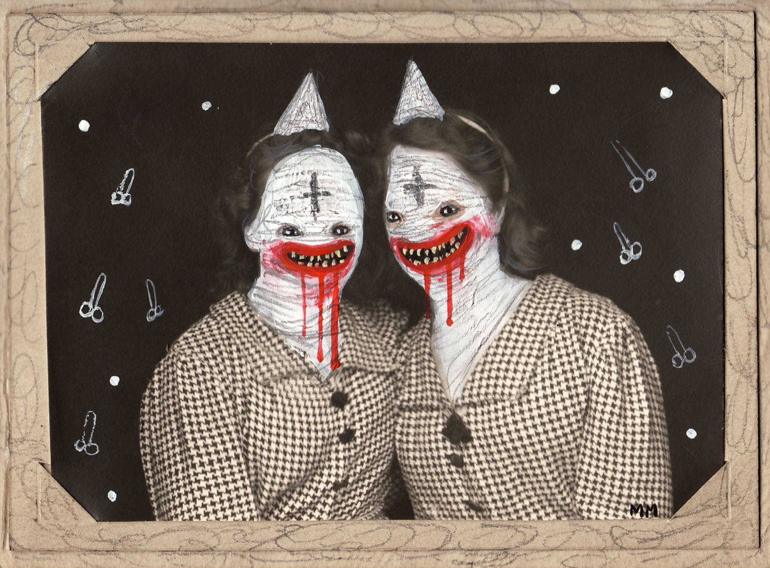 “Bloody Foxie” (2007) acrylic, paper cut-out on antique photo. Unavailable.
