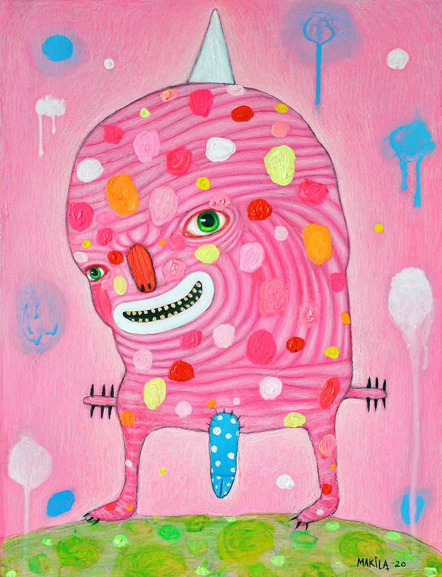 Published 2020-08-24 at 868 × 1133 “Mr Blue Dick Perkins”, acrylic and color pencil on cardboard (2020)
