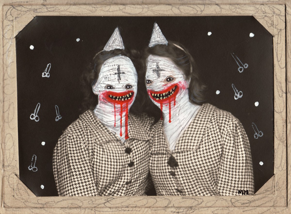 Previous Next Published 2020-08-26 at 1512 × 1116 in PAINTINGS BY MIA MAKILA “Two Idiots” (2009) Acrylic on antique photo. Available as a fine art poster. Contact artist.