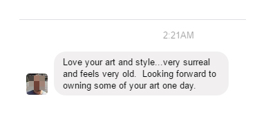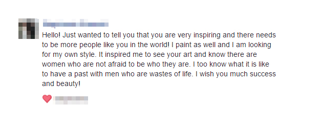 I am a lucky person, because what I create and put into the world somehow comes back to me like a beautiful reward. Every week, people send me warm and generous messages about my art. Not all people get such feedback when it comes to their work. I don’t think people thank their mailman for delivering the mail on time every day, or send positive feedback to the pilot after a successful flight. Being an artist is to work with the mind, heart and soul as the raw material for an expression – and then send the expression into the world to be looked at, judged, bought, ignored, praised or ridiculed. It takes a lot of courage to do that, but it can also be so rewarding. And when I am having a shitty day, things like this reminds me of my mission and why I am displaying my heart and soul in the public arena: