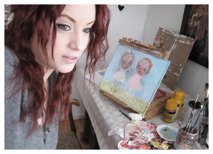 While I was working on “Twisted Sisters” in February 2011, I was struggling with a creativity blockage and a depression as a result. I tried everything to break the blockage; to keep painting even though my head was blank and empty on ideas and I hated every brushstroke (12 hours of this every day was pure torture), taking a break from painting (then feeling guilty for not creating art and feeling like a complete failure), trying new techniques, style, changing studio, buying a new easel, studying art, stop looking at art (over consumption), working according a schedule, working a few hours a day, a few hours a week, avoiding everything art related (panic attacks every time I got into the studio) etc.