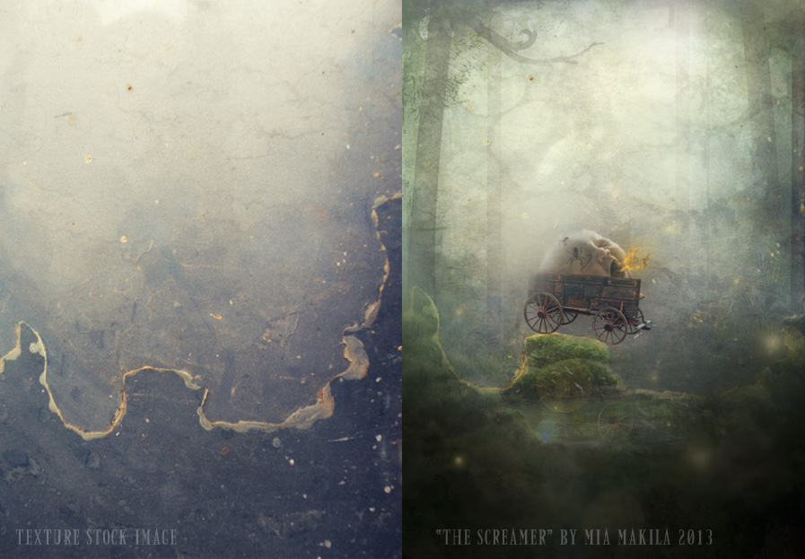I began with a simple composition, I used a texture scan as foundation for my composition, I thought it looked like a landscape and had movement and drama.