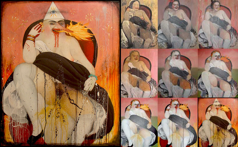 My painting “Judith” from 2007 is one of my most important paintings ever. Because before this painting, I had just started out making ‘horror art’ but it was mostly mixed media collages. Only a few years before I started to express my pain and fear through my art, I had made very classical still lifes with flower bouquets and jungle motifs.