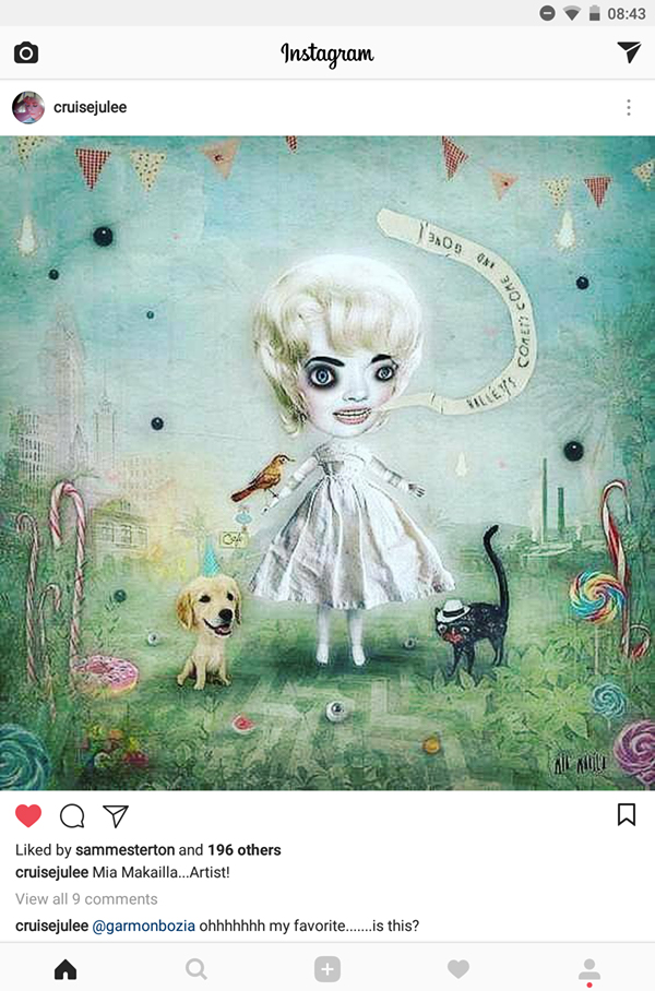 My friend and legendary Twin Peaks singer Julee Cruise just posted my old portrait of her on her Instagram! Rumor has it that she will be performing in one of the last two episodes of the new season of Twin Peaks that airs tonight in the US. Even if my name is misspelled, I feel so grateful and happy. Can’t wait to see her on Twin Peaks. I just know it will be magical.